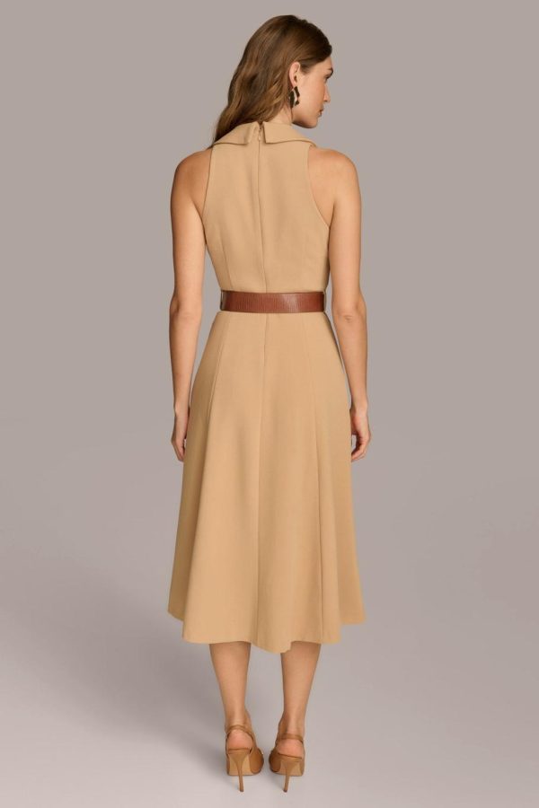 Women Donna Karan Dresses And Jumpsuits | CREPE FIT AND FLARE DRESS WITH BELT Fawn